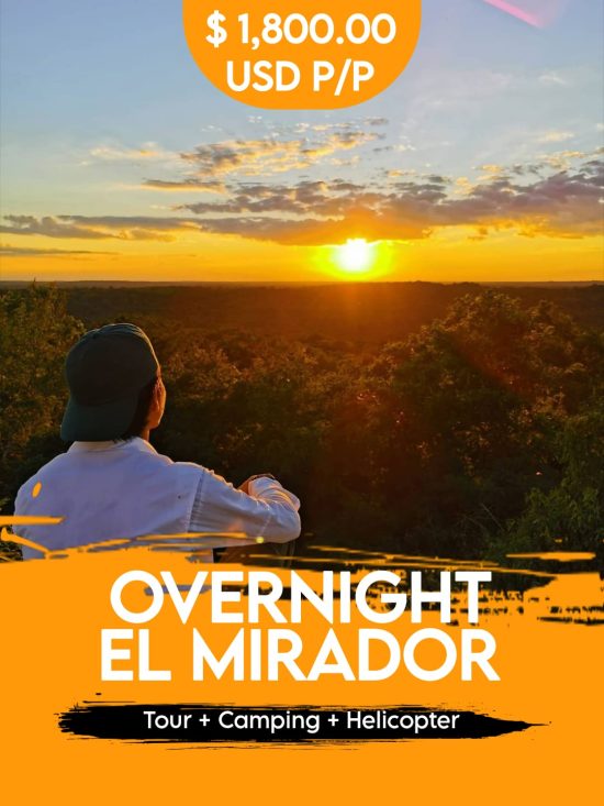 Una expedición exclusiva a la cuna de la civilización Maya, entre la selva eterna y las alturas del pasado. Siente cómo el tiempo se detiene mientras sobrevuelas la selva del Petén, un mar verde interminable que esconde uno de los secretos mejor guardados del mundo antiguo: El Mirador, la ciudad madre del Mundo Maya. Con nuestro tour exclusivo Overnight + Helicóptero, no solo visitas este sitio monumental… lo vives, lo duermes, lo respiras desde dentro.